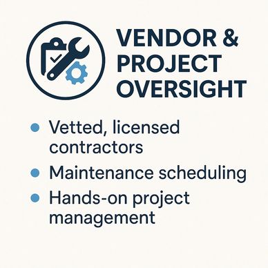 Meeting prep, action logs, variance handling, warranty tracking, and transparent reporting while the association remains under declarant control.