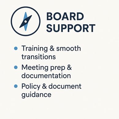 Entity setup support, initial board appointments, required notices, records framework, and policy suite aligned to Arizona best practices.